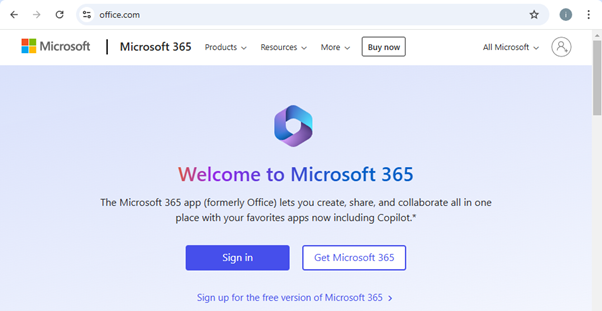 - Buka browser Anda dan masuk ke halaman https://office.com.