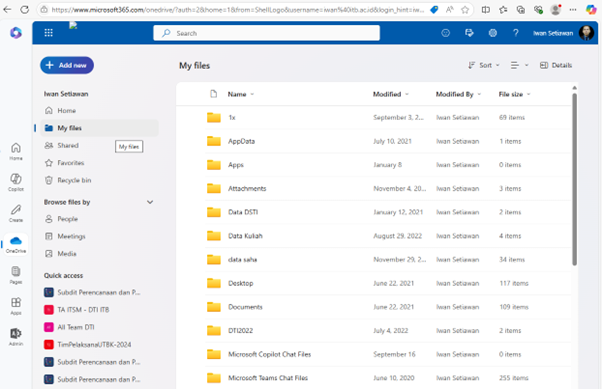 - Setelah masuk, Anda akan melihat tampilan semua file dan folder yang ada di OneDrive.