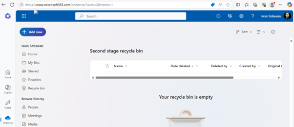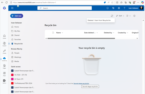 - Klik pada Second-stage Recycle Bin yang ada di bagian bawah halaman OneDrive (Gambar 10).