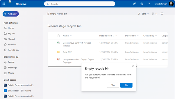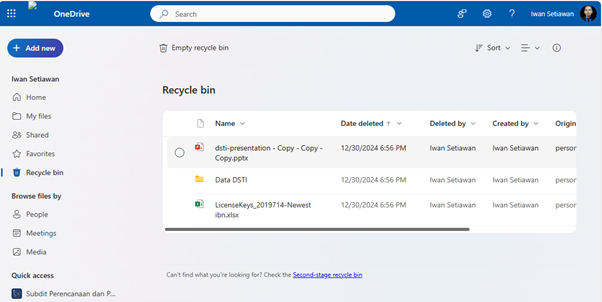 - Di dalam Second-stage Recycle Bin, Anda akan melihat file dan folder yang telah dihapus.