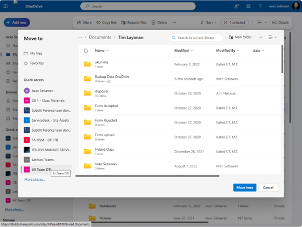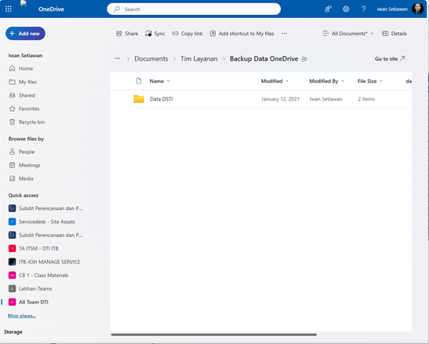 - Setelah data berhasil dipindahkan, Anda dapat mengecek data yang berhasil dipindahkan pada shared libraries yang Anda pilih sebelumnya (Gambar 7).