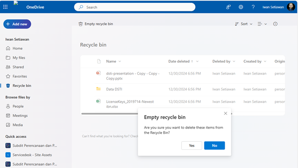 - Di dalam Recycle Bin, Anda akan melihat file dan folder yang telah dihapus.