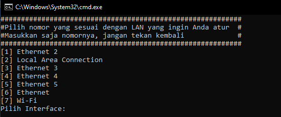 - Selanjutnya akan muncul sebuah prompt yang menampilkan pilihan network adapter untuk di assign fungsi dot1x.